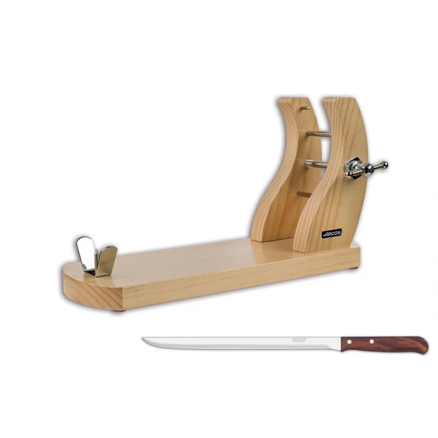 Support Jambon Bois Naturel et Couteau Jambon 25 cm Arcos